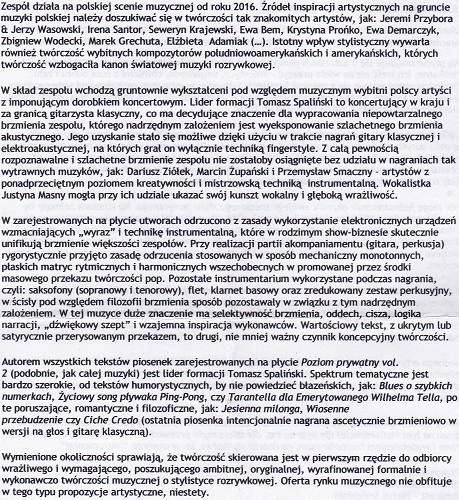 Istniejącą od 2016 roku formację Poziom Prywatny prowadzi ceniony gitarzysta, kameralista, kompozytor i pedagog prof.dr hab.Tomasz Spaliński (fot.), będący też twórcą jej repertuaru.